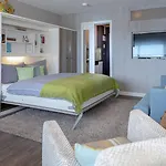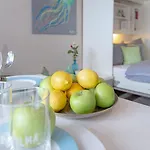 O apartamento dispõe de quartos com varanda, internet de alta velocidade e TV.